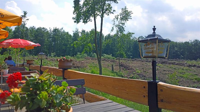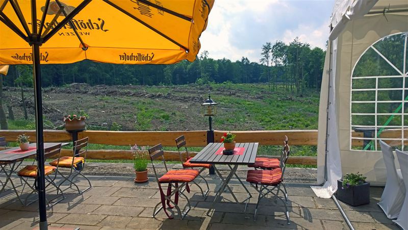 Nach nun Jahrzehnten wachsenden Waldes um die Baude herum war es nun aufgrund von Borkenkäferbefall notwendig, den Wald nahe der Baude zu roden. Nun ja...jetzt ist es etwas heller und "übersichtlicher" mit mehr Weitblick, nun auch wieder zum Brocken.
